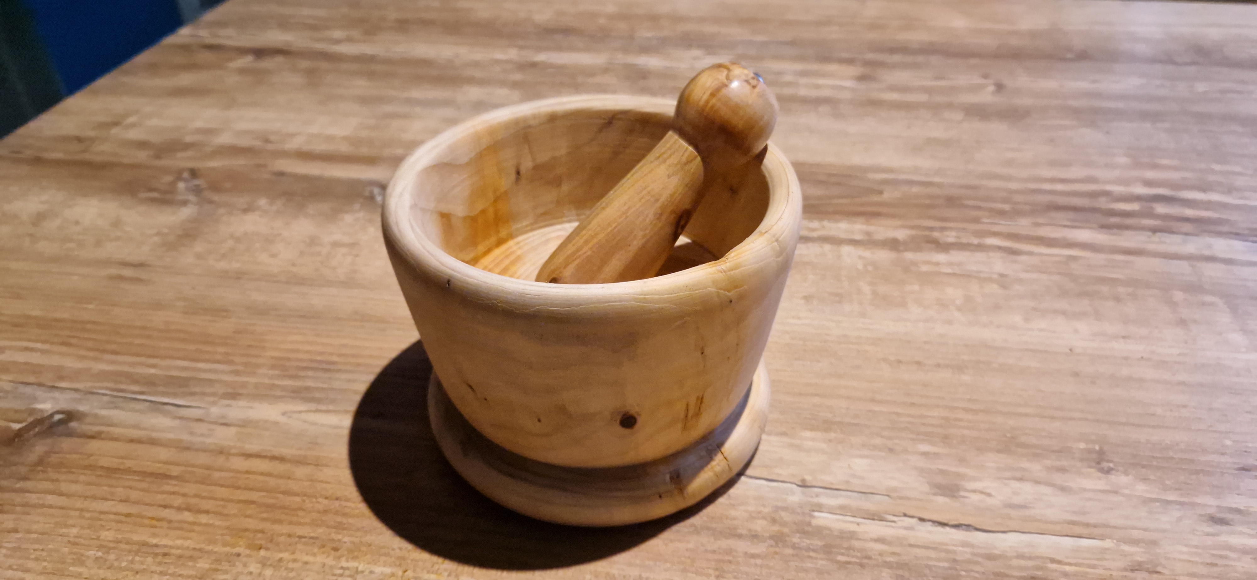 Véritable mortier de cuisine en cèdre massif, Pilon en robinier pour une solidité à toute épreuve. Il vous accompagnera dans vos recettes telles que l'aïoli et bien d'autre.
